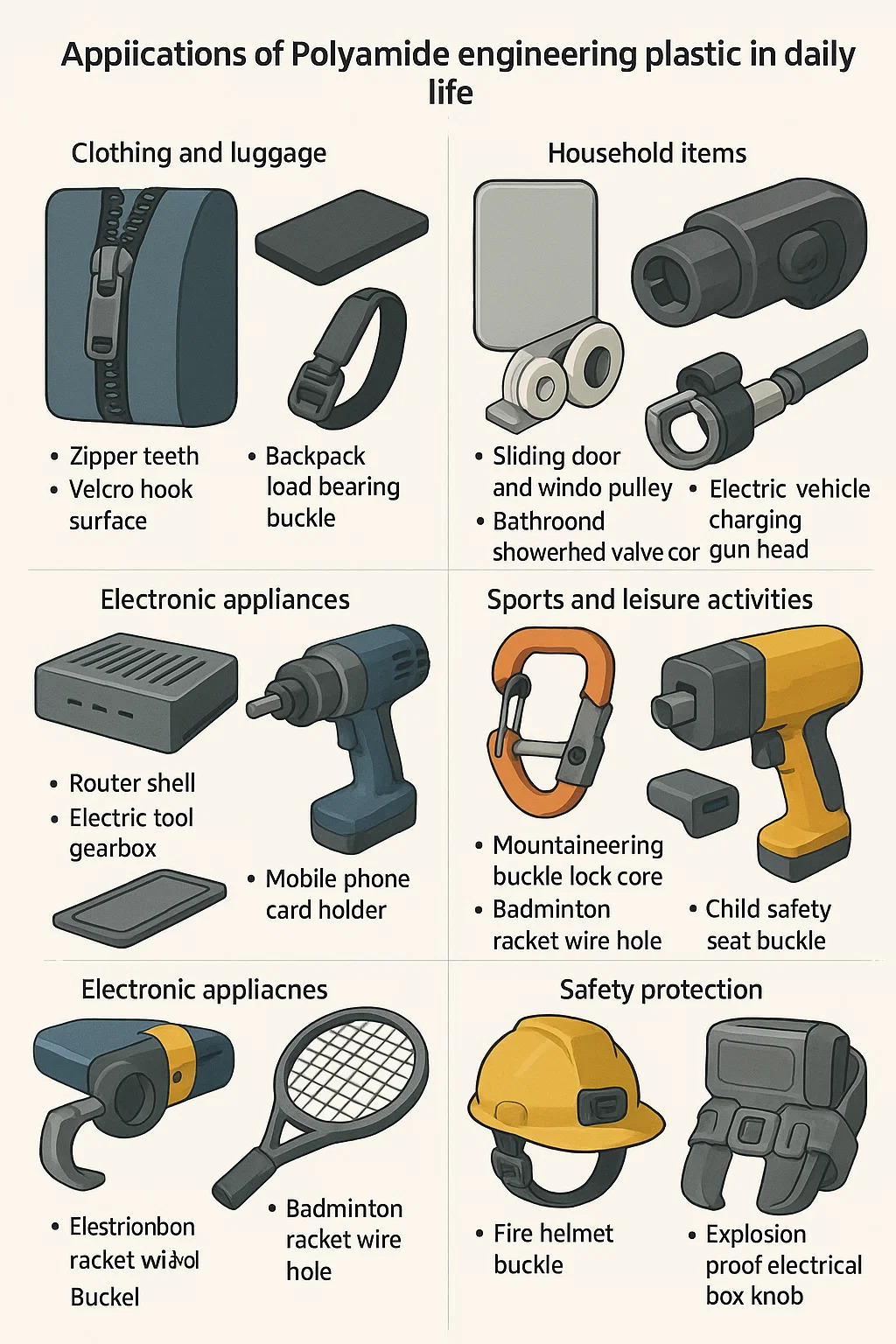 Bruken av Engineering Plastic Polyamide I dagliglivet gjennomsyrer flere felt, og kjerneverdien ligger i egenskapene til å erstatte stål med plast og være lett og holdbar. Spesifikke typiske scenarier er som følger: